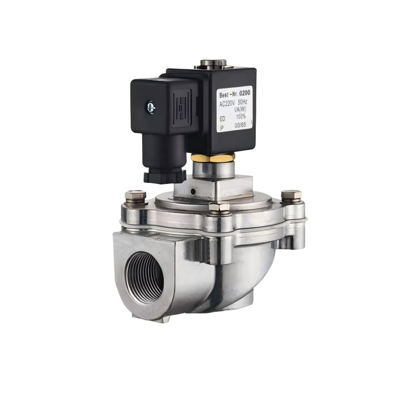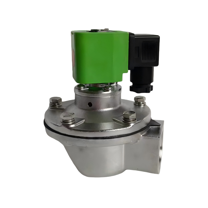 ДМФ-З електромагнетни импулсни вентил под правим углом је специјализовани електромагнетни вентил дизајниран посебно за употребу са сакупљачима прашине у врећама. Служи као прекидач компримованог ваздуха за систем за чишћење са пулсним млазом у сакупљачима прашине са пулсним млазом. Контролисан излазним сигналима из инструмента за контролу пулсног млаза, он секвенцијално врши пулсно-млазно чишћење филтер кеса ред по ред (или комору по комору). Ово одржава отпорност сакупљача прашине у оквиру унапред подешеног опсега, обезбеђујући његов капацитет обраде и ефикасност сакупљања прашине док се постиже циљ отресања прашине са филтер кеса.